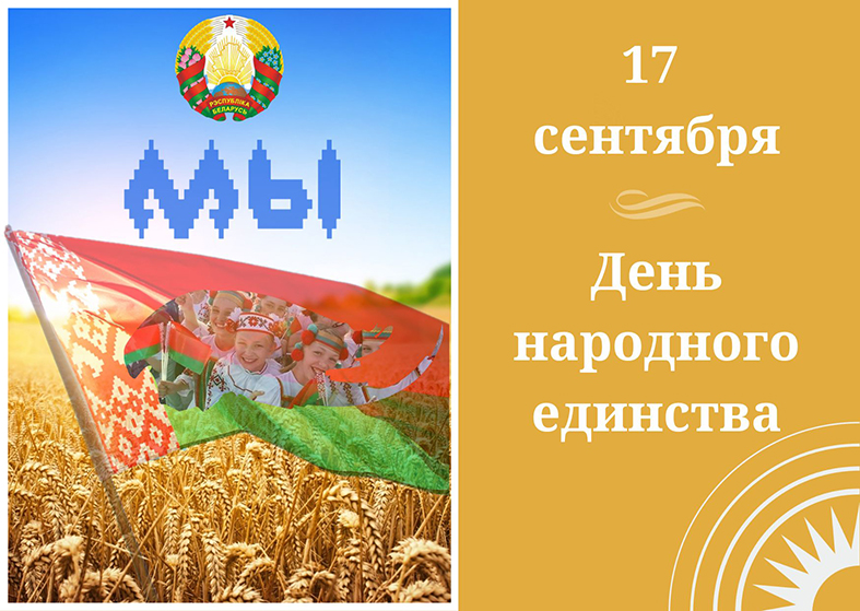 17 сентября страна отметит День народного единства — символ единения и патриотизма белорусов. Этот день возвращает нас к исторической дате 17 сентября 1939 года, когда произошло судьбоносное событие истории родной земли — было положено начало воссоединению Восточной и Западной Беларуси, формированию единой белорусской нации, которая против её воли была разделена Рижским мирным договором в 1921 году. Поэтому 17 сентября по праву называют точкой отсчёта новой истории единого белорусского народа.