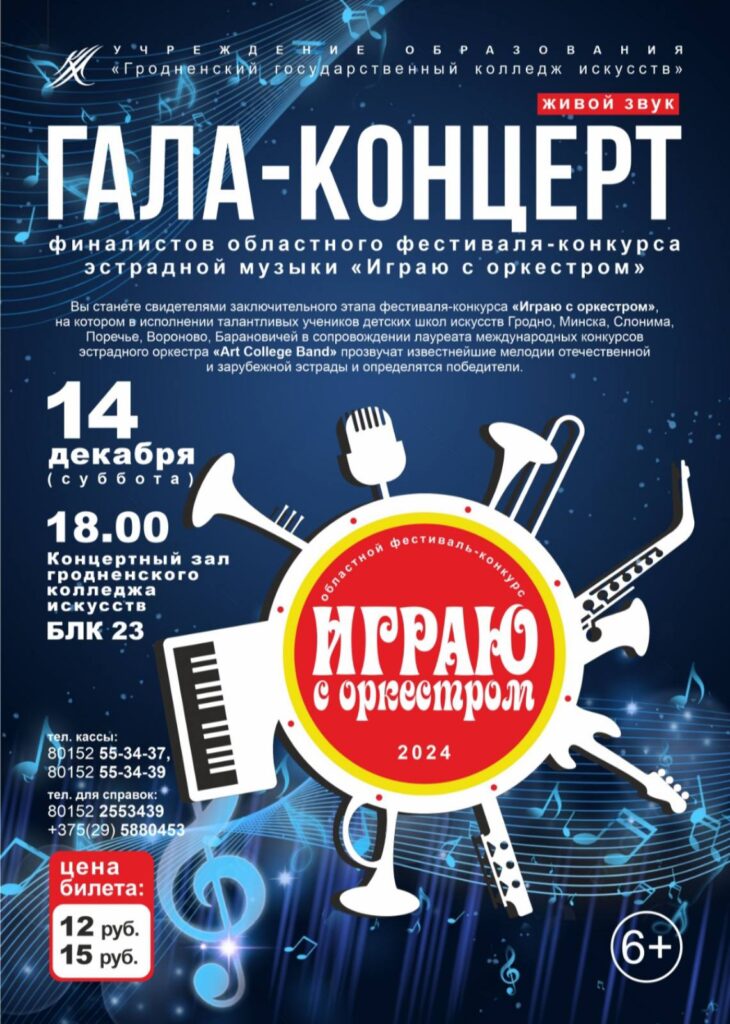 14.12.2024 Гала-концерт финалистов областного фестиваля-конкурса эстрадной музыки «Играю с оркестром» УО «Гродненский государственный колледж искусств»